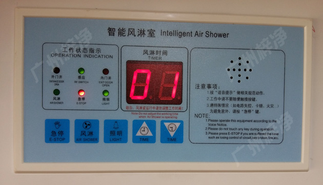 第一步:進(jìn)入風(fēng)淋室找到風(fēng)淋室控制器面板(看下圖);