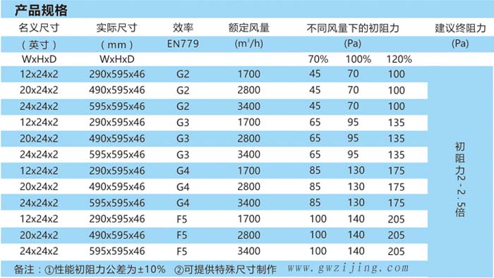 大風量初效過濾器尺寸規(guī)格: