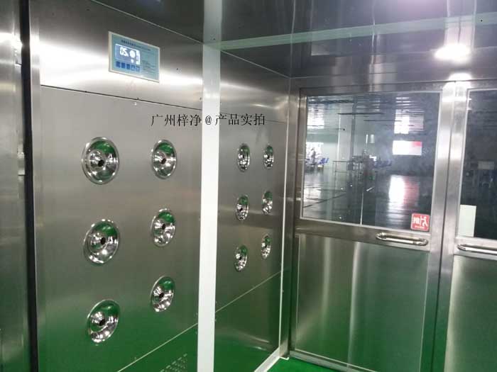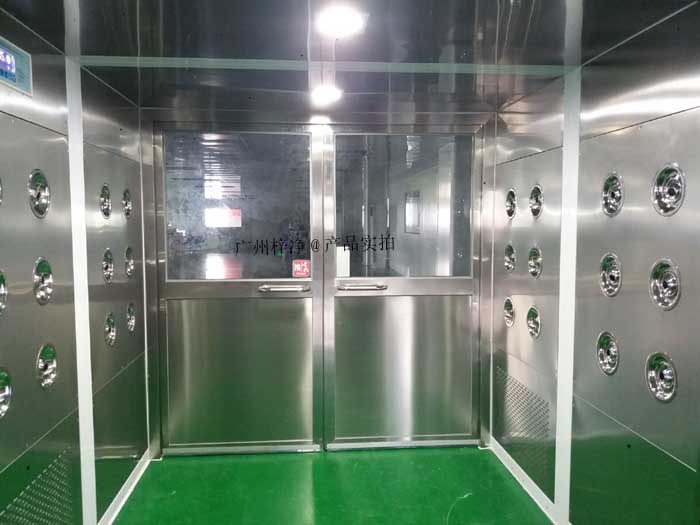風淋室主要是吹除工作人員衣物、發(fā)屑、體表所吸附塵埃;貨淋室是吹除人或物體表面吸附塵埃。