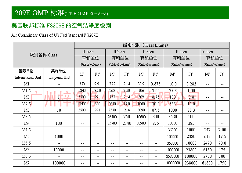 美國聯(lián)邦標準FS209E的空氣潔凈度級別出處:廣州梓凈凈化設備有限公司 官方網站http://www.yy4wd.com/