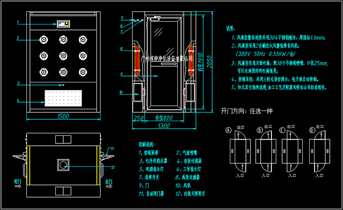 安全性:風(fēng)淋室的設(shè)計(jì)應(yīng)優(yōu)先考慮操作人員的安全,包括防觸電、防誤操作等。