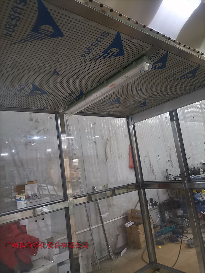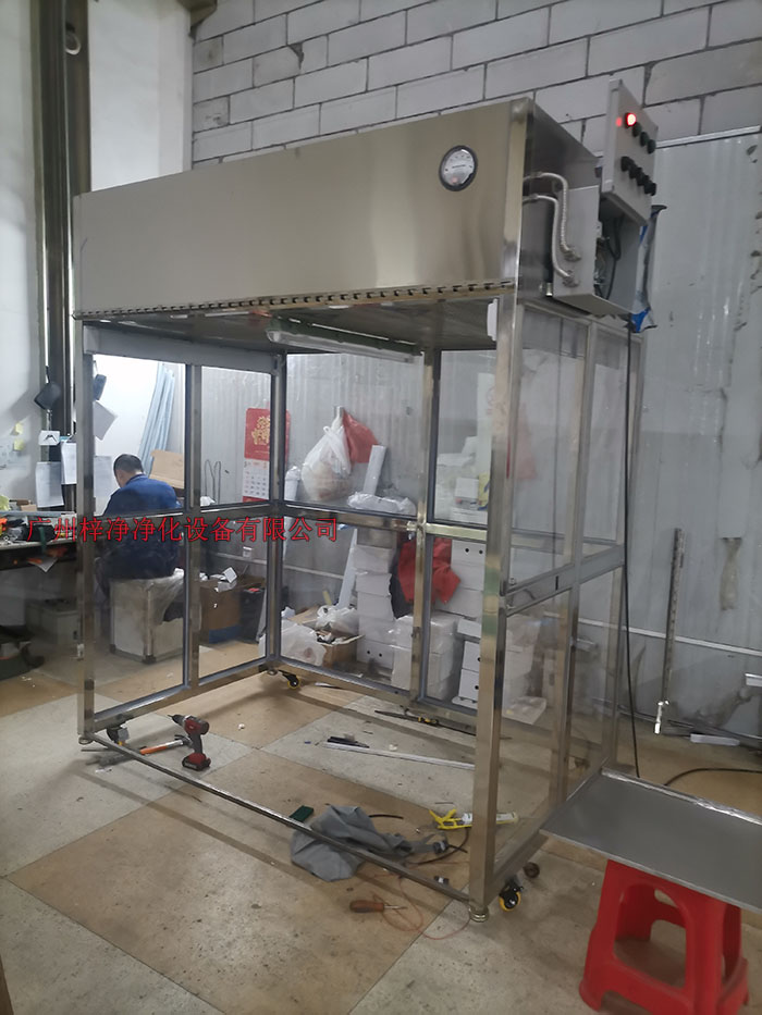 2、工作區(qū)兩側(cè)為不銹鋼擋板,前后為條形防靜電防塵垂簾,達(dá)到理想防塵效果;