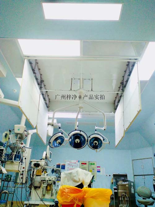 送風(fēng)天花工作運行時,首先吸入外部環(huán)境空氣,然后經(jīng)過空氣凈化消毒系統(tǒng)使其過濾成為潔凈無菌的空氣,再以層流的方式將潔凈空氣送到罩內(nèi)病床所在區(qū)域,使之罩內(nèi)范圍時刻保持正壓,以有效阻止外部空間塵埃粒子以及有害微生物等進(jìn)入手術(shù)工作區(qū)。