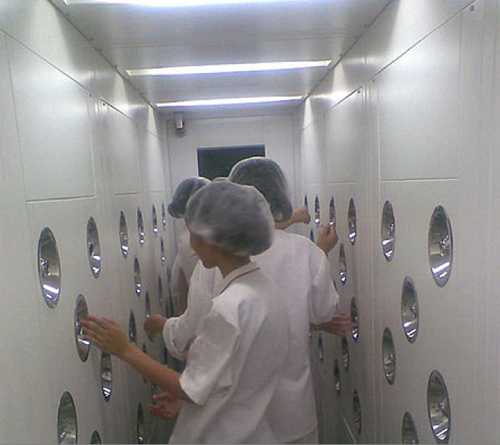 潔凈車間入口:人員進(jìn)入潔凈車間前,必須經(jīng)過(guò)風(fēng)淋室的凈化處理。